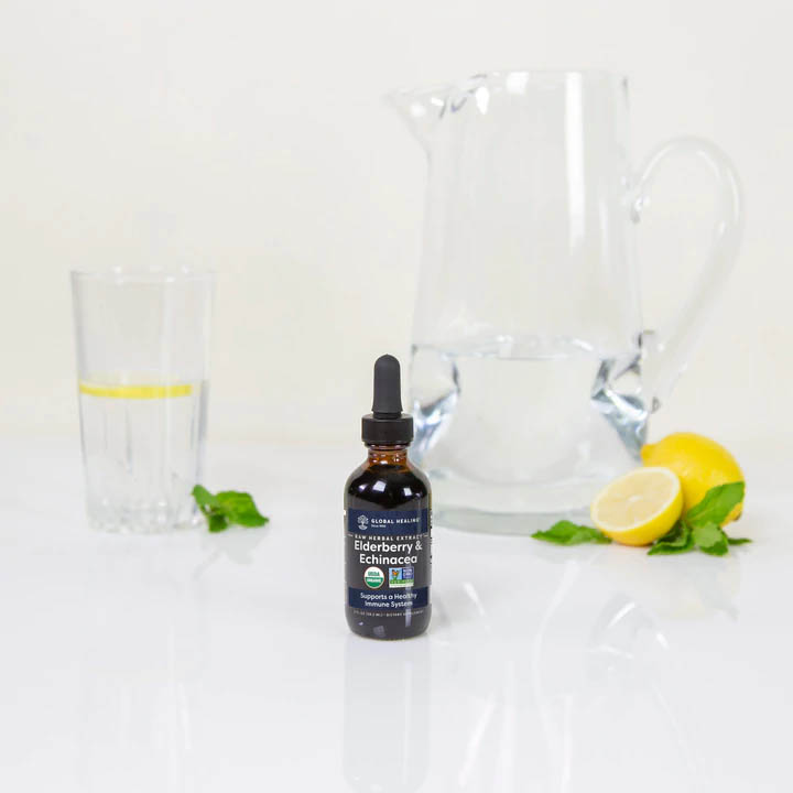Global Healing's Elderberry & Echinacea is a Raw Herbal Extract™ meticulously crafted in a ratio of 60% Elderberry and 40% Echinacea. This combination provides a concentrated amount of beneficial compounds known to support a healthy immune system and defend against harmful organisms. It's great-tasting, easy to use, and safe for kids. Provide excellent support to your body during periods of seasonal illness — especially the winter months!