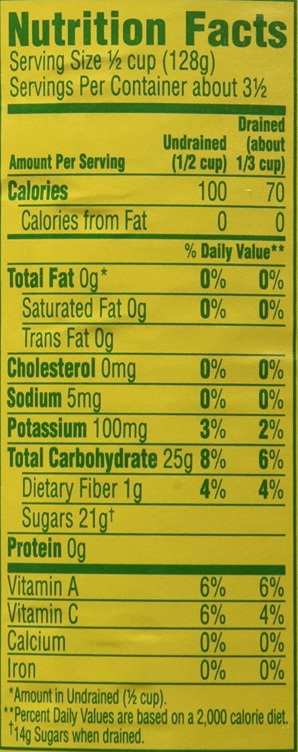 Ingredients 'PEACHES, WATER, HIGH FRUCTOSE CORN SYRUP, CORN SYRUP, SUGAR.'
