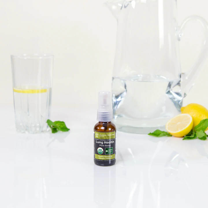 Lung Health is an all-natural, liquid, herbal formula produced with our proprietary Raw Herbal Extract technology that can detoxify, cleanse, and refresh the entire respiratory system. It’s an organic formula made with a blend of powerful herbs and essential oils that soothe and cleanse the lungs, throat, and sinuses to promote clear, easy breathing. Use it any time to support your airways! It’s great for morning, afternoon, or in the evening before bed.