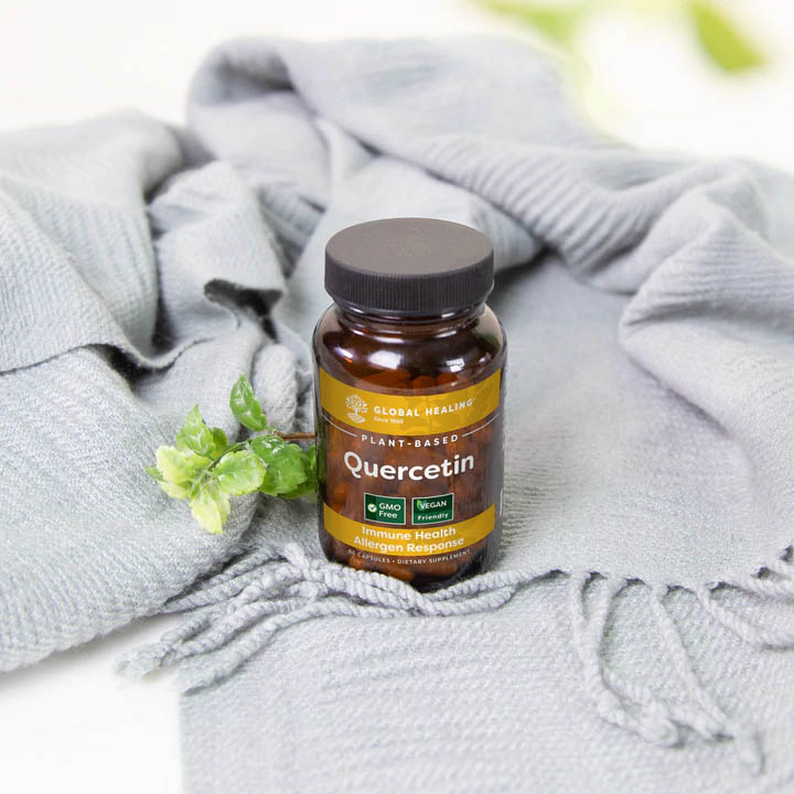 Quercetin is a naturally occurring antioxidant found in many plant foods such as onions, cranberries, berries, and leafy greens. For decades, Quercetin has been used to support the immune and respiratory systems. Global Healing’s Plant-Based Quercetin is made with a patented, highly bioavailable form of quercetin called Quercefit®️ to strengthen your body’s defense against free radicals, stubborn allergens, and harmful organisms.