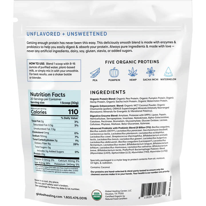 - Clean, Plant-Based, Certified Organic Protein Powder
