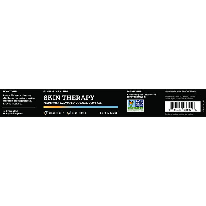 Skin Therapy is an antioxidant-rich balm crafted with organic ozonated olive oil. Made by bubbling ozone through organic olive oil to saturate it with oxygen, Skin Therapy moisturizes in a way that nothing else can. From nourishing dry, cracked skin to soothing itches and scratches, Skin Therapy can be used for just about any skin-related need. Our rich balm is unscented and perfect for all skin types! Use morning or night as part of your skincare routine or for any cut, scrape, bug bite, or scratch. Keep refrigerated after opening to preserve the natural ingredients.