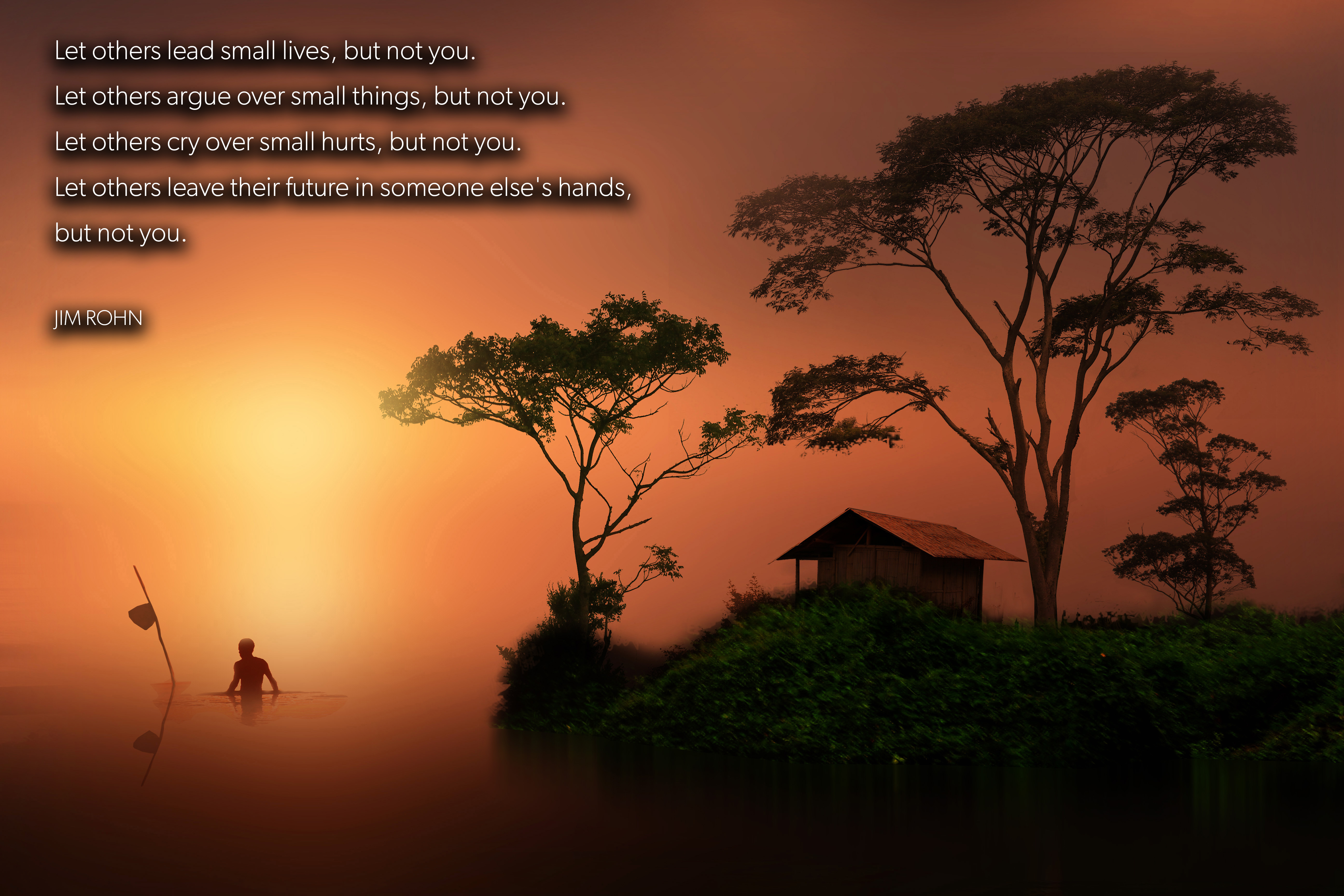Let others lead small lives, but not you. Let others argue over small things, but not you. Let others cry over small hurts, but not you. Let others leave their future in someone else's hands, but not you. -Jim Rohn