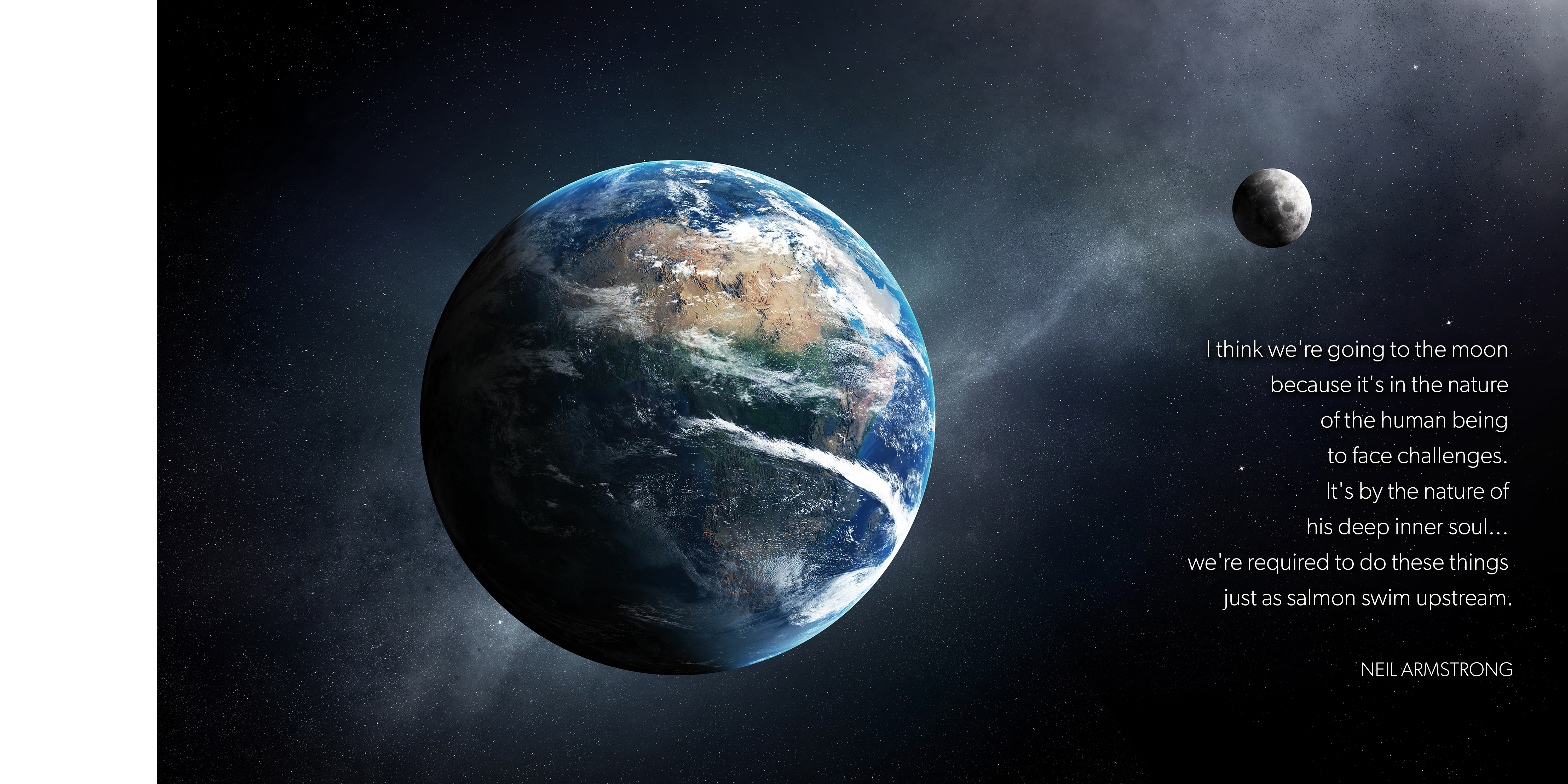 I think we're going to the moon because it 's in the nature of the human being to face challenges. It's by the nature of his deep inner soul... we're required to do these things just as salmon swim upstream. -Neil Armstrong