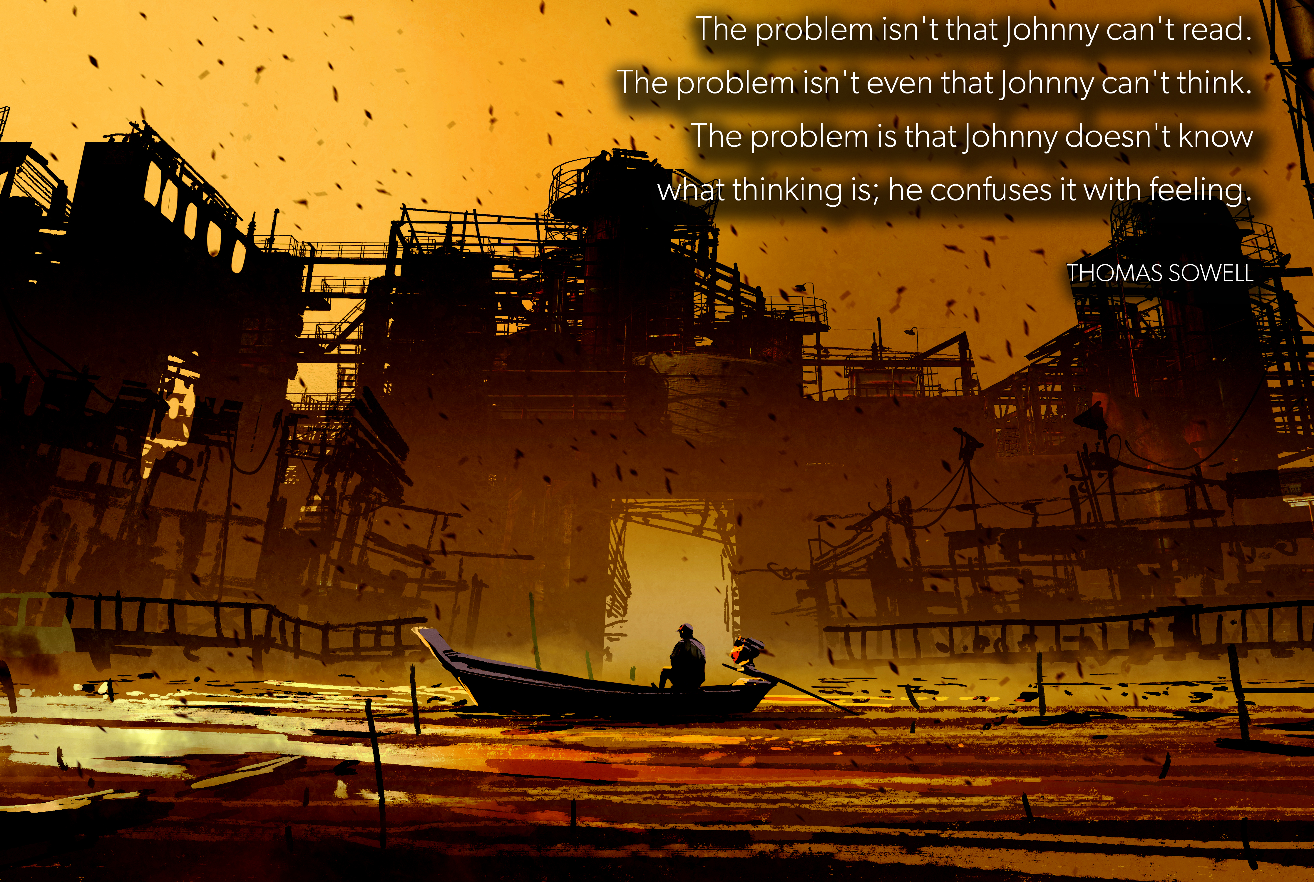 The problem isn't that Johnny can't read. The problem isn't even that Johnny can't think. The problem is that Johnny doesn't know what thinking is; he confuses it with feeling. -Thomas Sowell