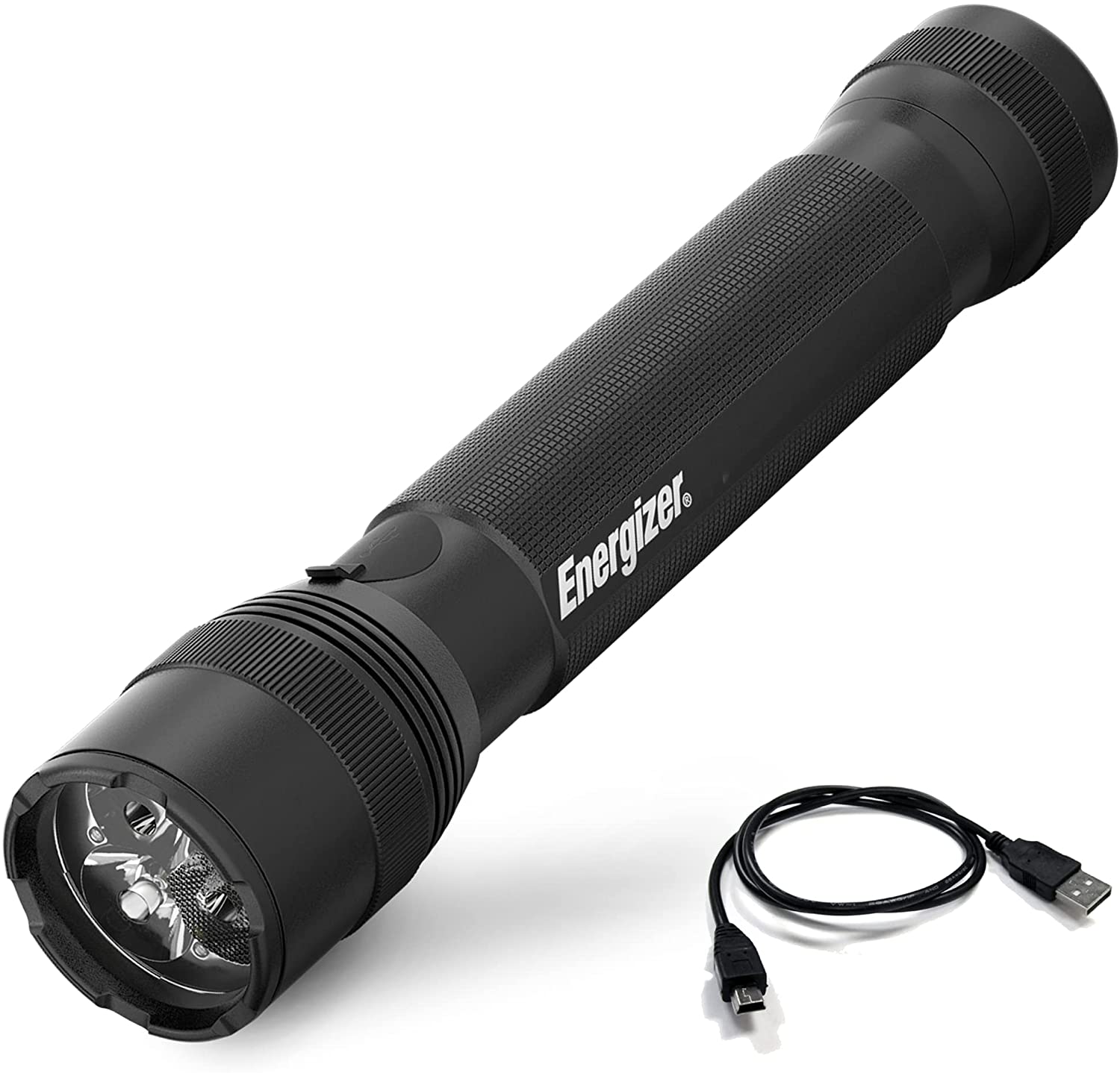 [RELIABLE EMERGENCY LIGHT]: The Energizer TAC R 1000 Rechargeable Tactical Flashlight combines a powerful beam and durable body with practical emergency features, including Strobe light mode and UBS port-out to charge your other devices