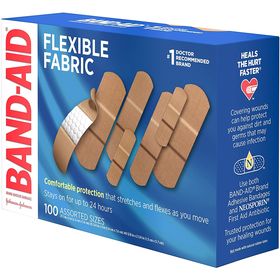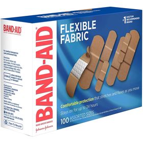 Band-Aid Brand Flexible Fabric Adhesive Bandages for Wound Care & First Aid, Assorted Sizes, 100 Ct, Beige