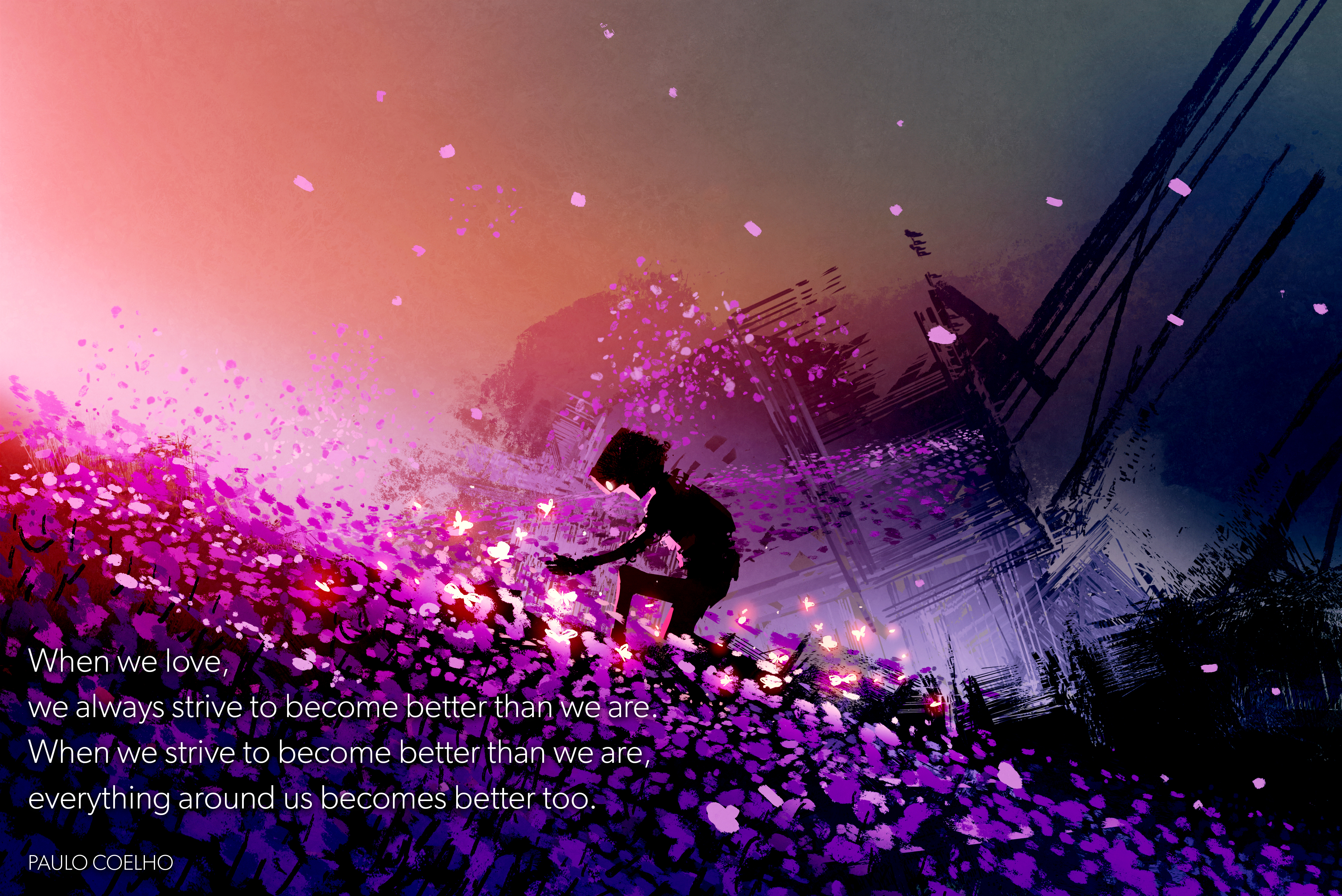 When we love, we always strive to become better than we are. When we strive to become better than we are, everything around us becomes better too. -Paolo Coelho