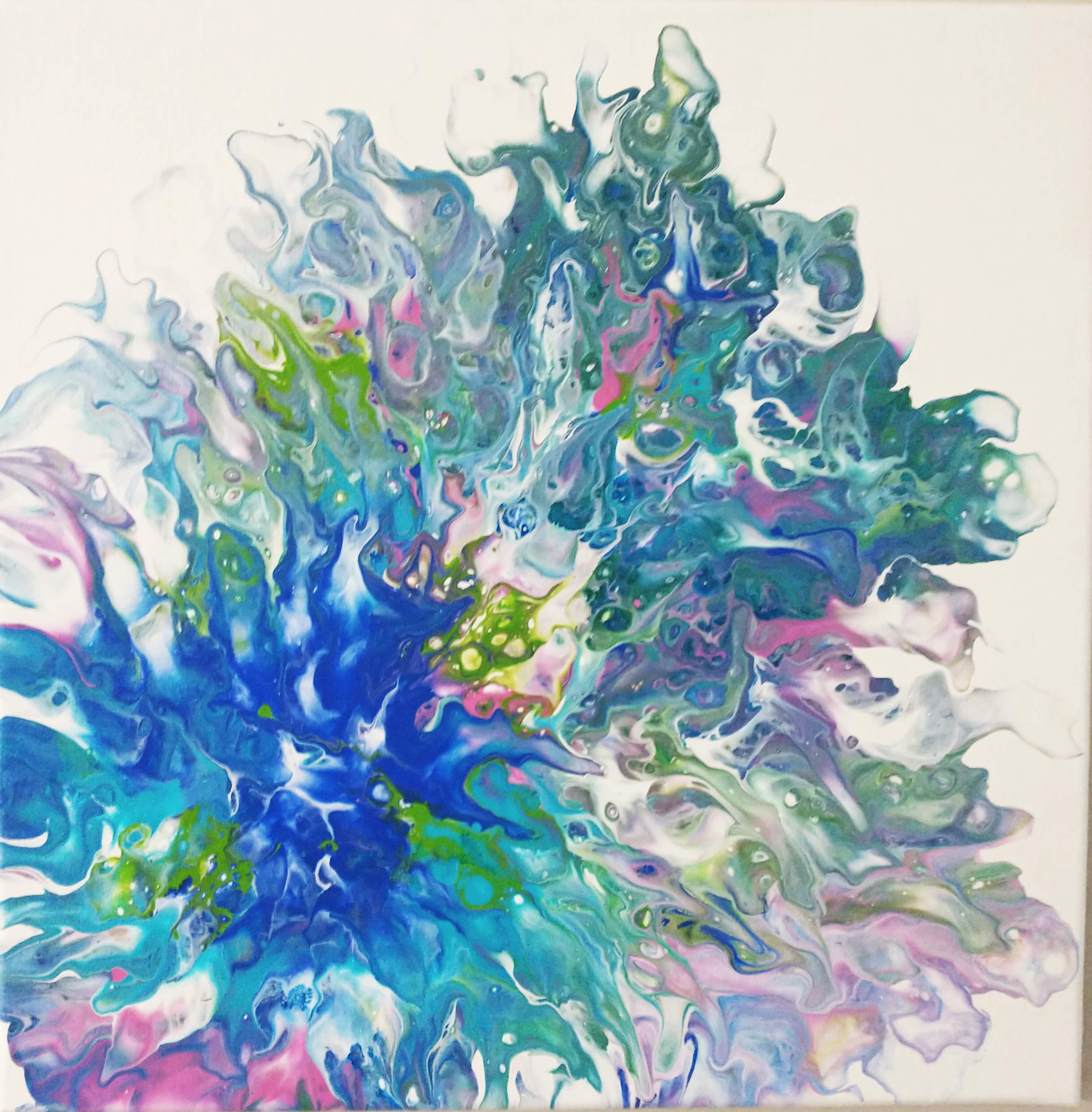 The colors used in this painting are Thalo Blue, Sea Green, Turquoise and Magenta