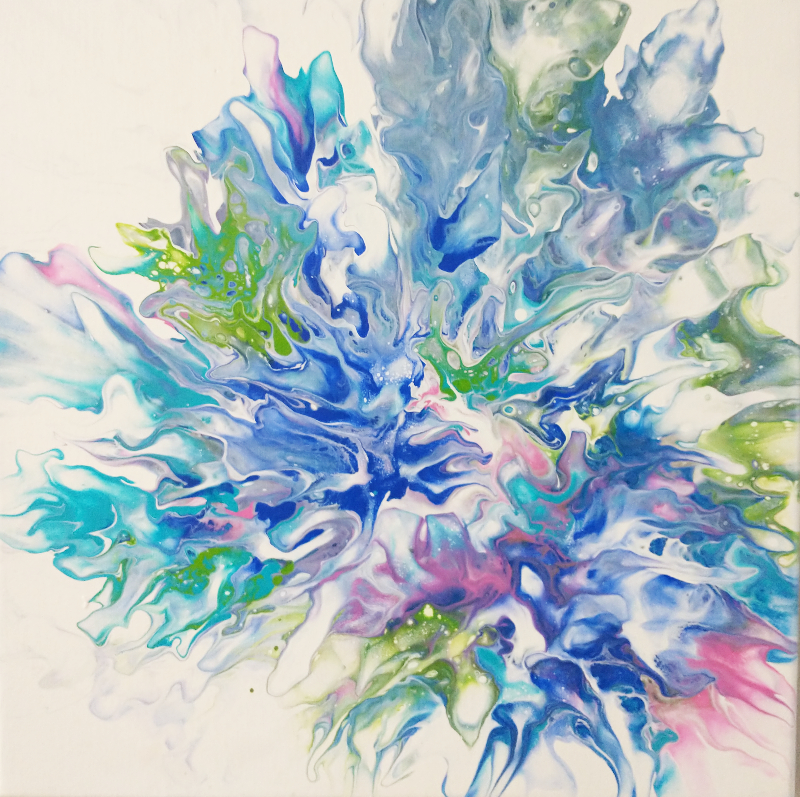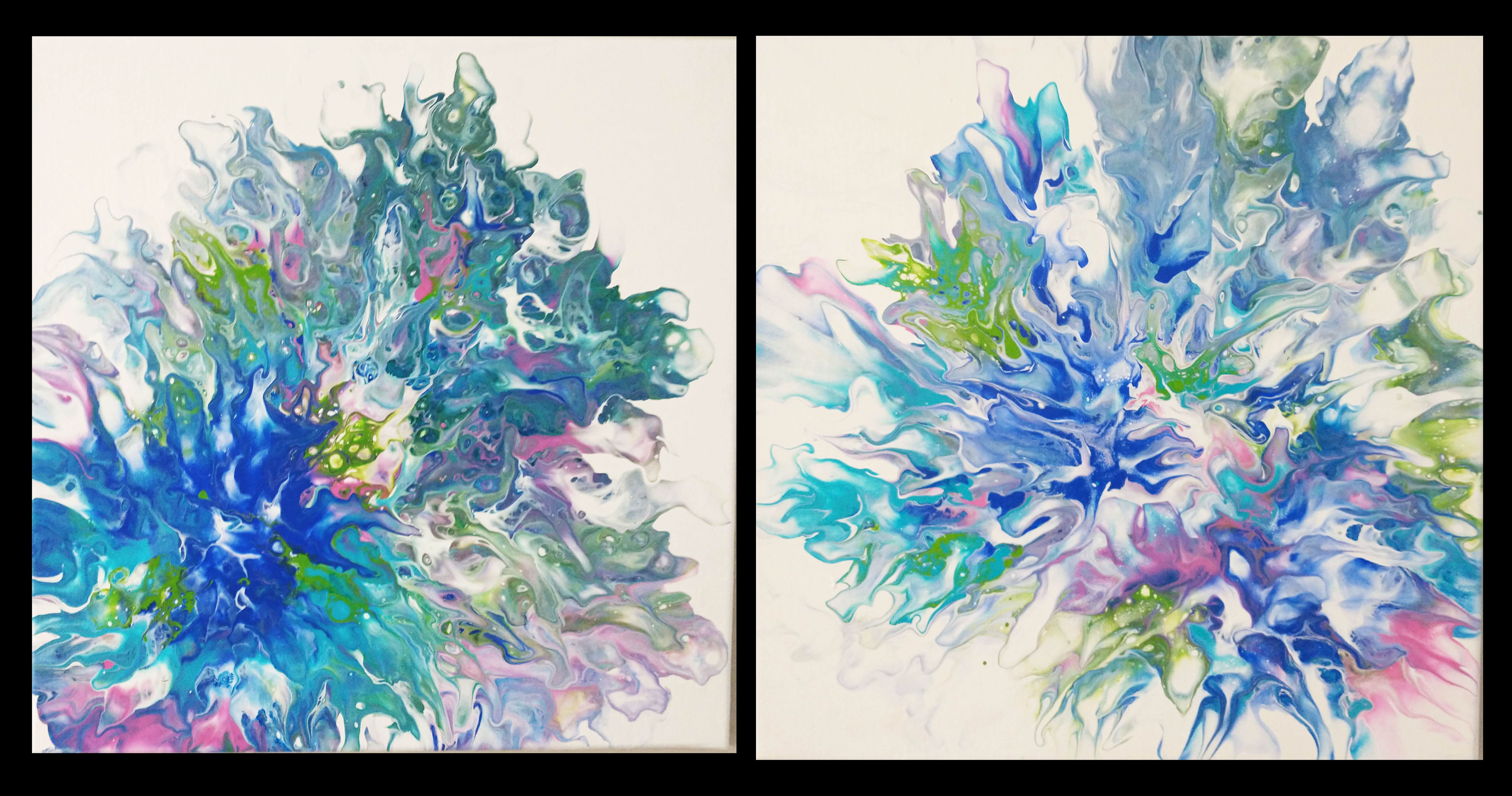 'Sea Bouquet' Pair are Original Acrylic Paintings using the Dutch pour technique where different colored paints are blown over other colors, often times creating beautiful cells
