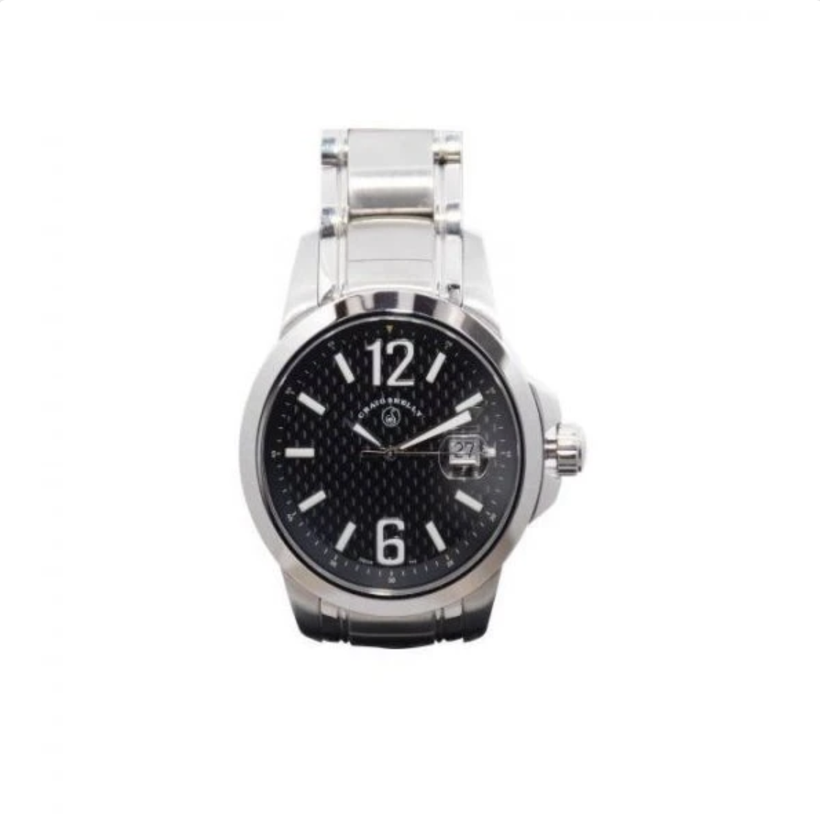 Fibre de Carbone's is named for its carbon fiber dial. Designed for the Beverly Hills Police Department, this piece is designed for utility. Its strong steel body coupled with its hidden bi-fold push-button buckle and screw down diver crown allows for maximum durability. Glow-in-the-dark dial allows night timekeeping and the sapphire crystal surface fends off scratches. Waterproofed up to 20 ATM for maximum durability in survival situations.