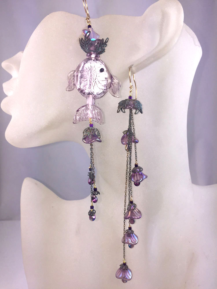 Every piece of jewelry in the Earring Addict Gallery is a unique, one-of-a-kind sculpture made of exotic treasures, beads, and artifacts. They are designed by highly-awarded, Marise Cherin, whose unique jewelry innovations have adorned stage, film and television projects, including use in the first episode of Star Trek: The Next Generation.