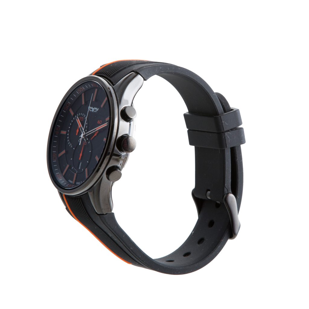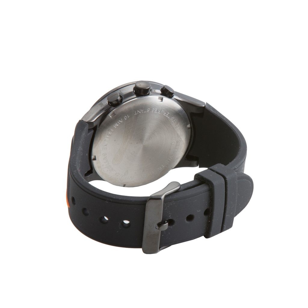 Nitro is a Swiss Chronograph with a rubber strap that is a complete blend of style, quality and durability. Its 30 minute register and 1/10 second counter allows for high functionality that is most suited for harsher settings.
