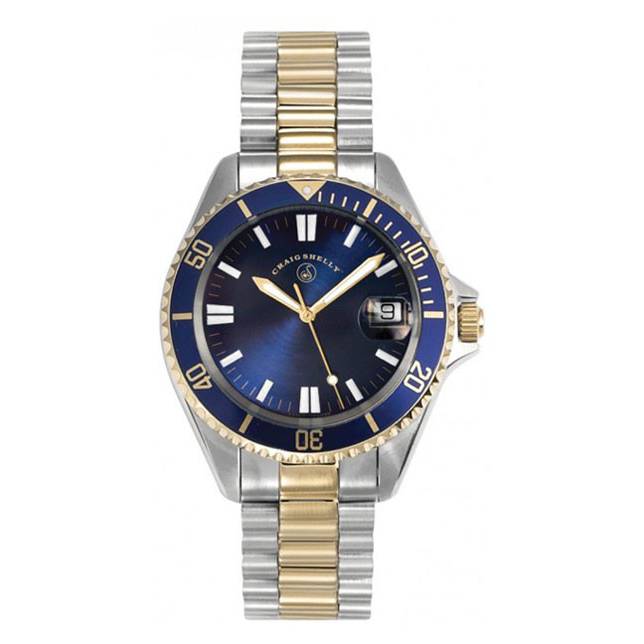 The Royale upholds Craig Shelly’s standards in flair and pernamency. Its colors represents both the Beverly Hills Police Department and Craig Shelly as a metaphor of promised protection and high standards. The Royale has a stainless steel body, a diver security lock buckle, one-directional rotating diver bezel, and a screw down diver crown. Additionally, for further protection, its sapphire crystal face is built beautifully, showcasing the luminous dial and hands.
