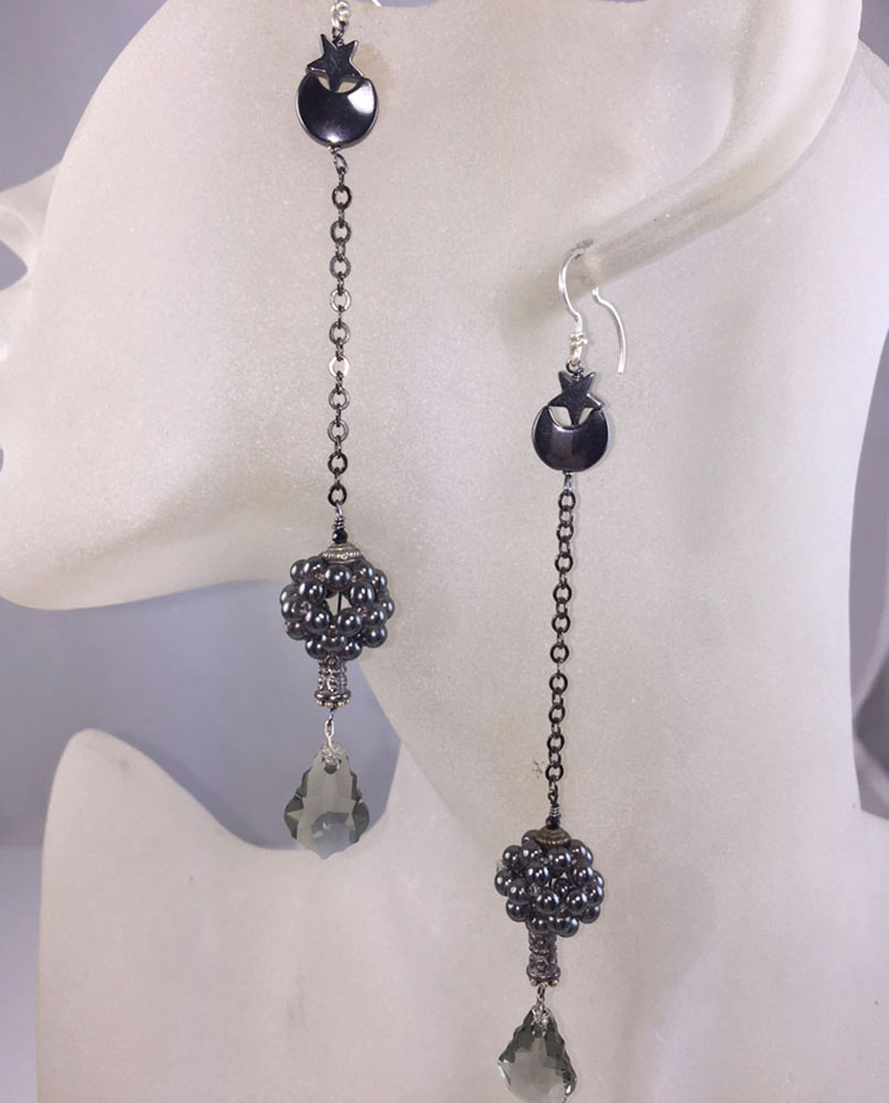 Hematite and smoked crystal - when black simply won't do.4 inches long. Medium-light weight.