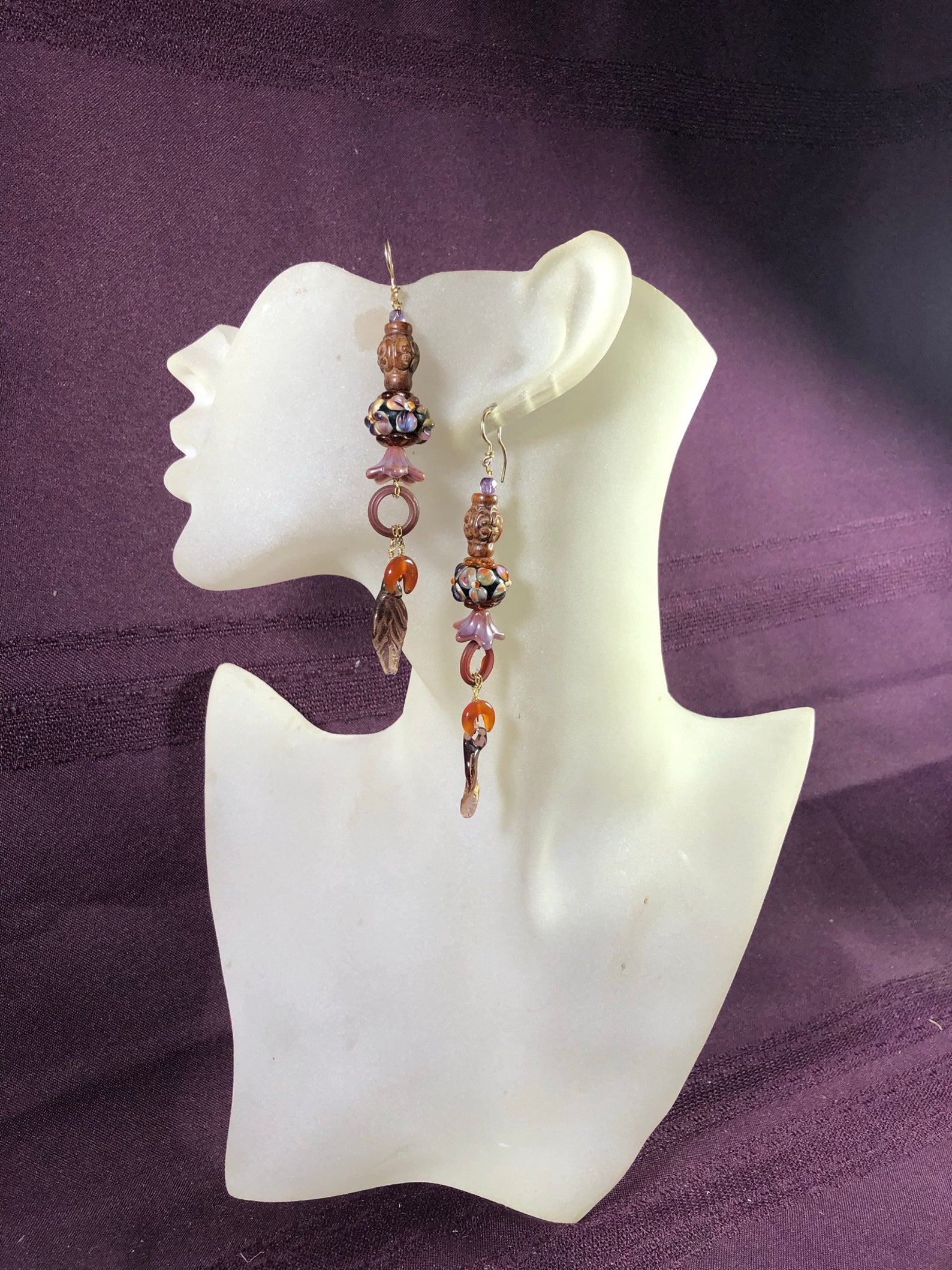 Browns, Russet, Rust, Jasper, Carnelian, Long, Drop, Dangly Earrings, Lavender, Glass, Redhead.