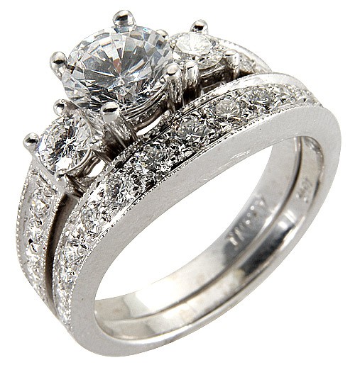 Classic Ring and Band Set in 18K Gold with Round Diamond in Center and sides.
