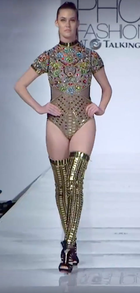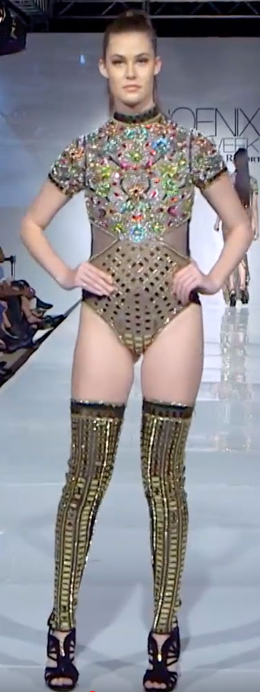 Elie Madi at For The Stars Fashion House, designed this stunning bodysuit. Now you may own your very own replica of the bodysuit, custom made to your exact size.