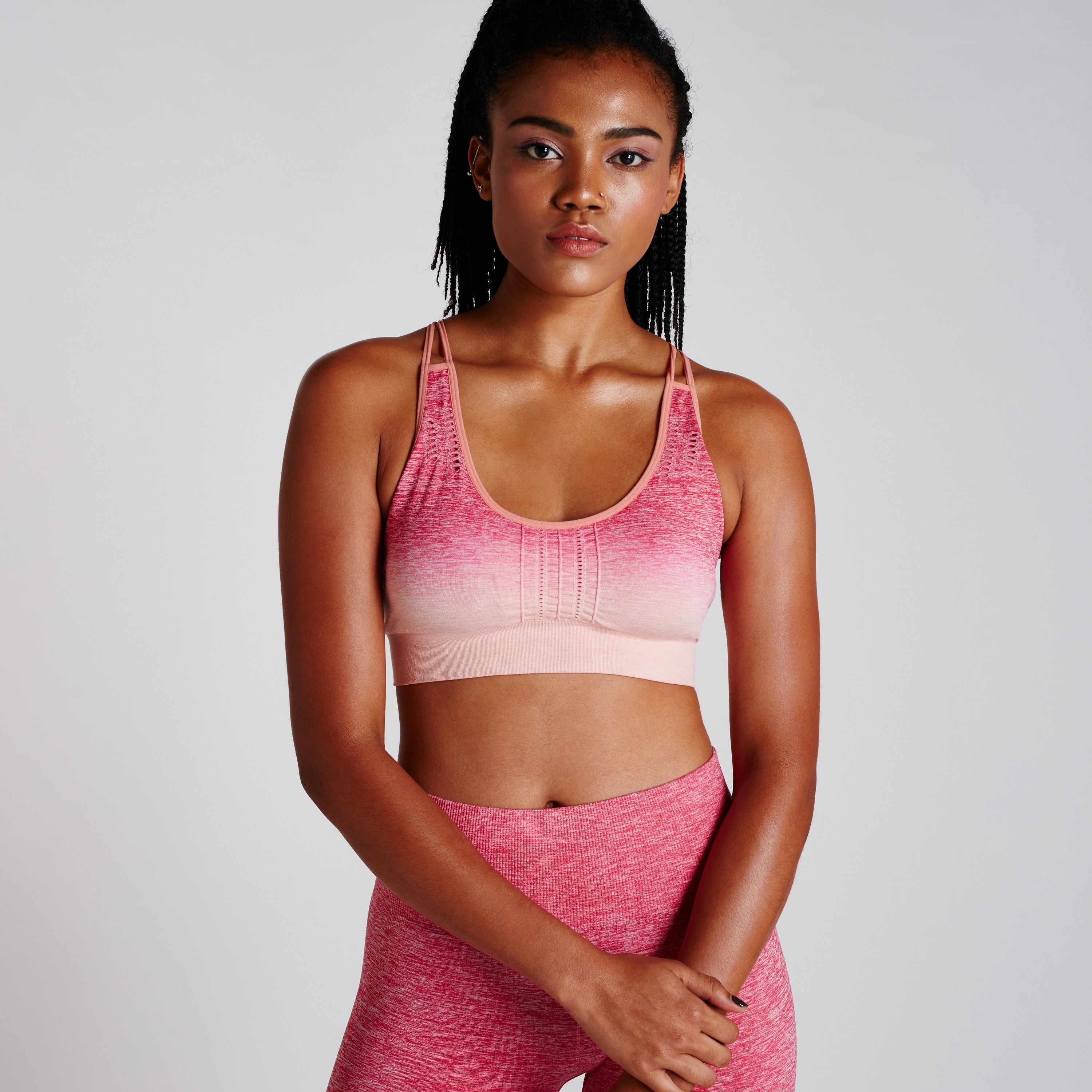 This fan favorite ombre seamless bra is designed with style in mind. Engineered mesh details help keep you cool. Offers moderate coverage and light support. Special Features Total comfort and movement for your low-impact workouts Sorbtek® superior sweat-wicking technology helps keep you cool, dry, and comfortable Customize your fit with removable bra cups Virtually seam-free for comfort Mesh details for added breathability Fit Low-impact support Moderate coverage Models are featured in Size S.