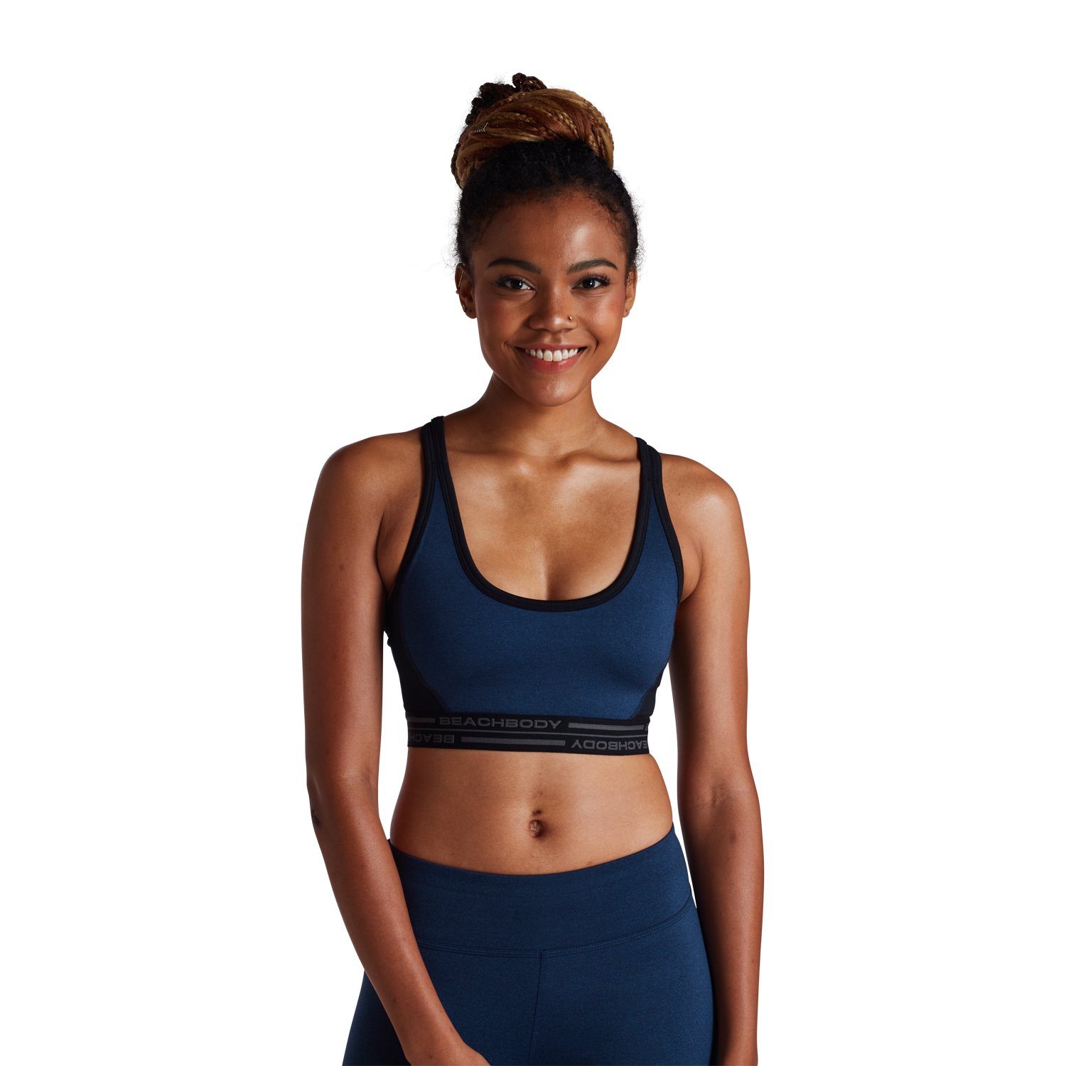 Turn up the heat in this strappy back bra that provides comfort and mid-impact support, while keeping you cool through your workout. Special Features Fit engineered for performance and comfort Sorbtek® superior sweat-wicking fabric helps keep you cool, dry, and comfortable Customize your fit with removable bra cups Exclusive Beachbody® branded elastic band Fit Mid-impact support Moderate coverage Models are featured in Size S.