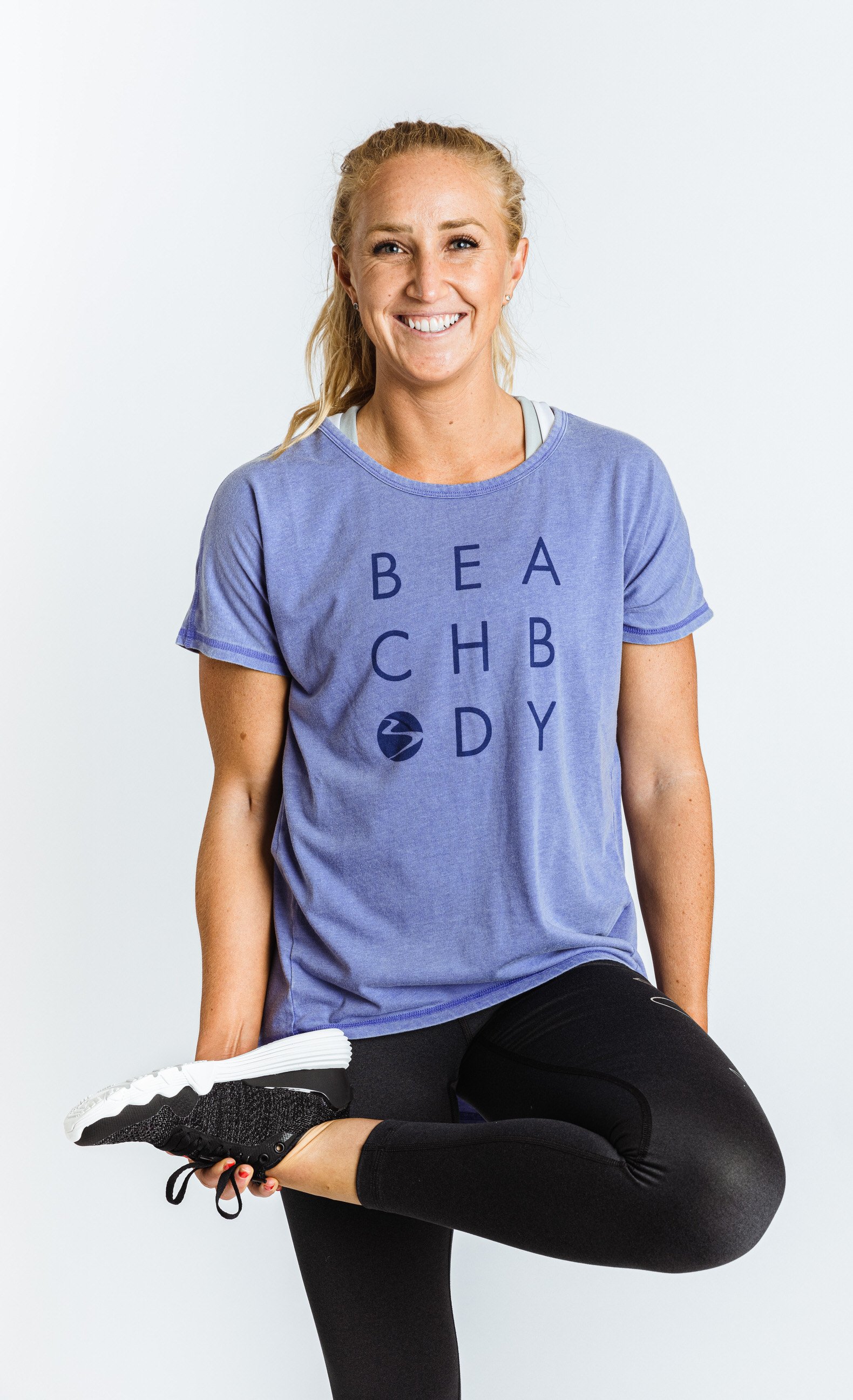 Comfort comes first in this soft and lightweight graphic tee that keeps you cool with its relaxed fit and peek-a-boo detail, so you can work out or chill out in style Made with DRY-TEK® fabric to keep you cool and dry Garment washed for soft, lightweight layering Novel back peek-a-boo detail for cooling Exclusive Beachbody graphic Fit Relaxed fit